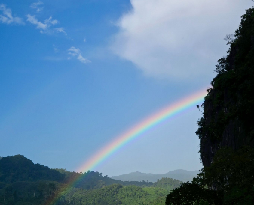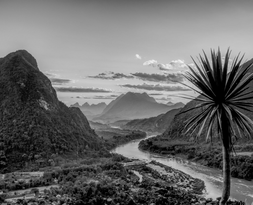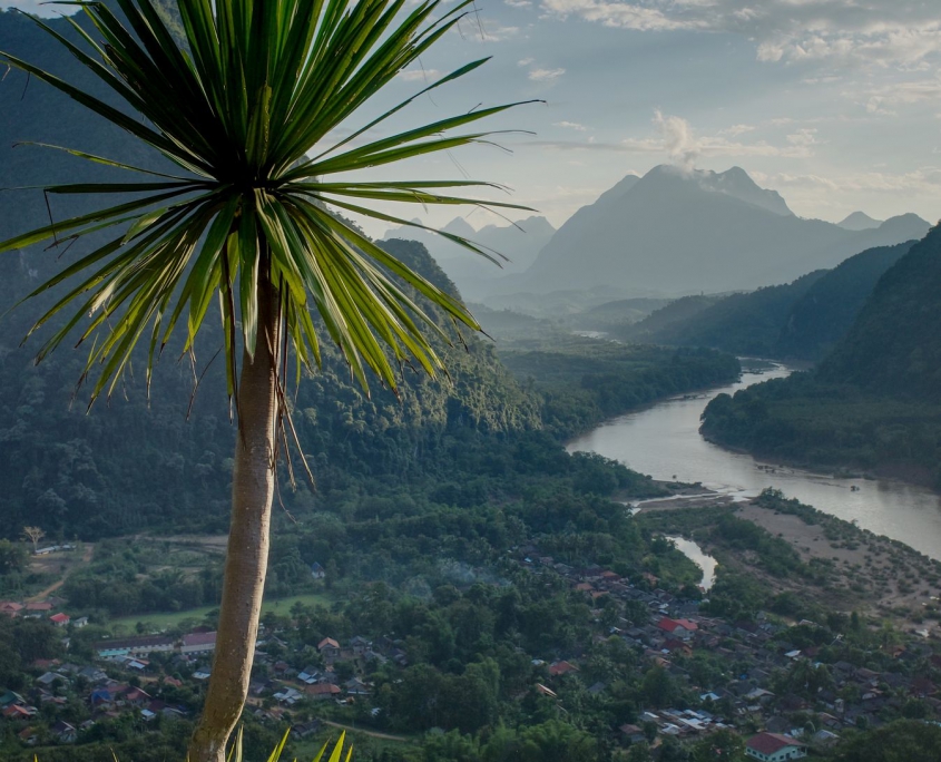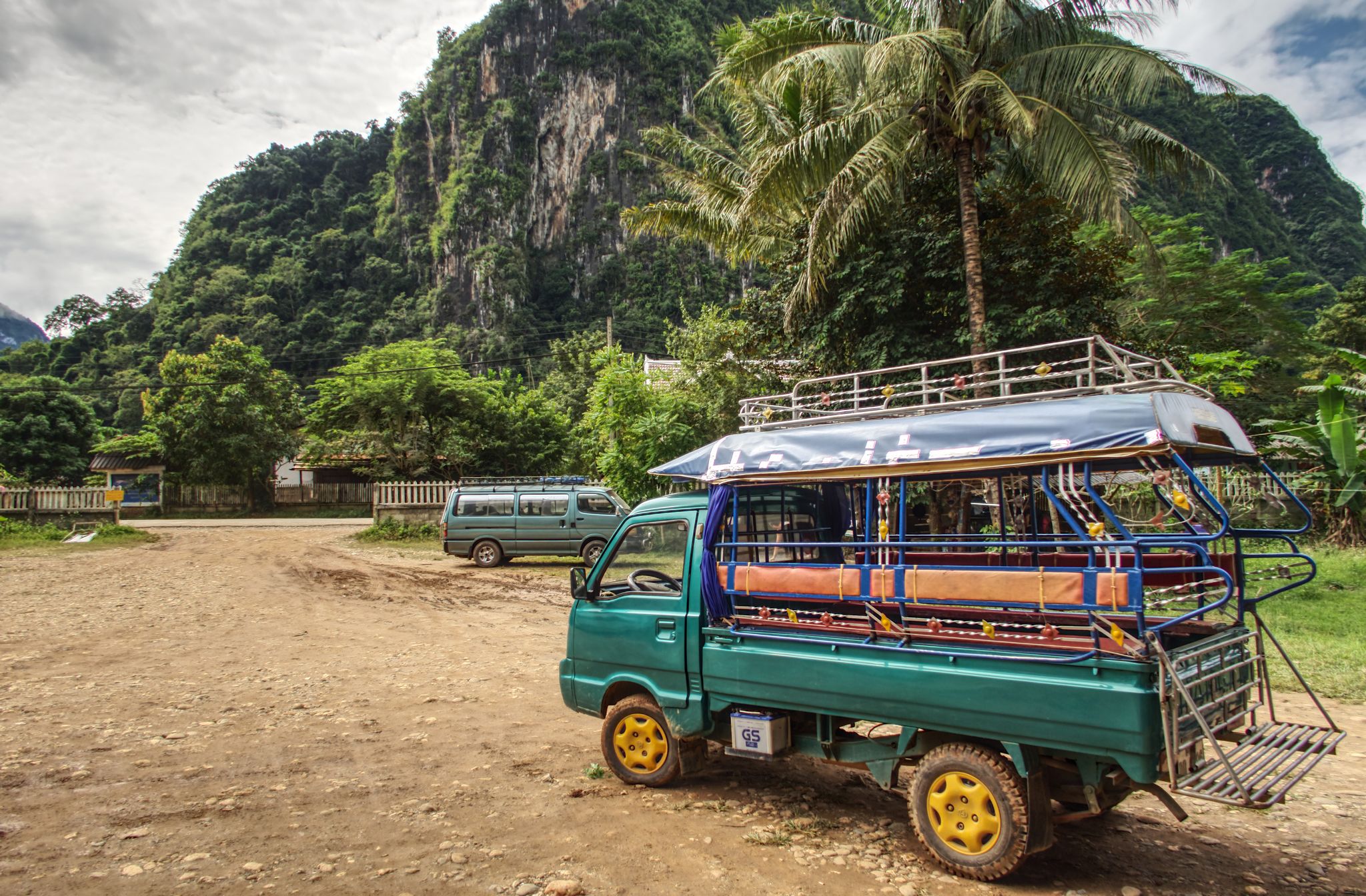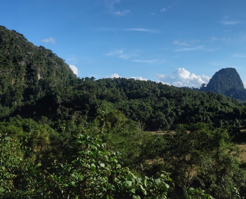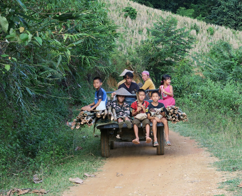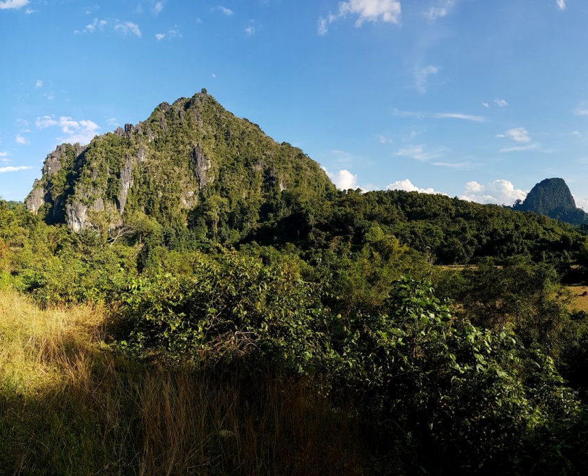 Nong Kiaw ist mit dem Bus in drei Stunden von Luang Prabang aus erreichbar. Es sind drei sehr holprige Stunden und zwischendurch sieht man immer wieder ausgewaschene Stellen. Die Regenzeit ist noch nicht lange vorbei, was wir auch gut am Wetter noch merken. Es ist viel bewölkt und es regnet noch ab und zu.