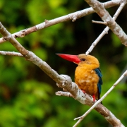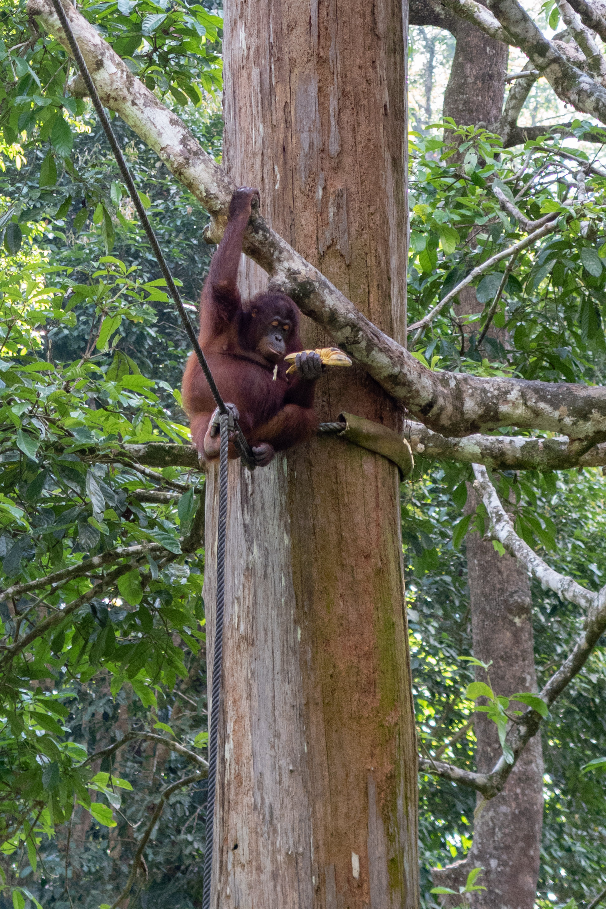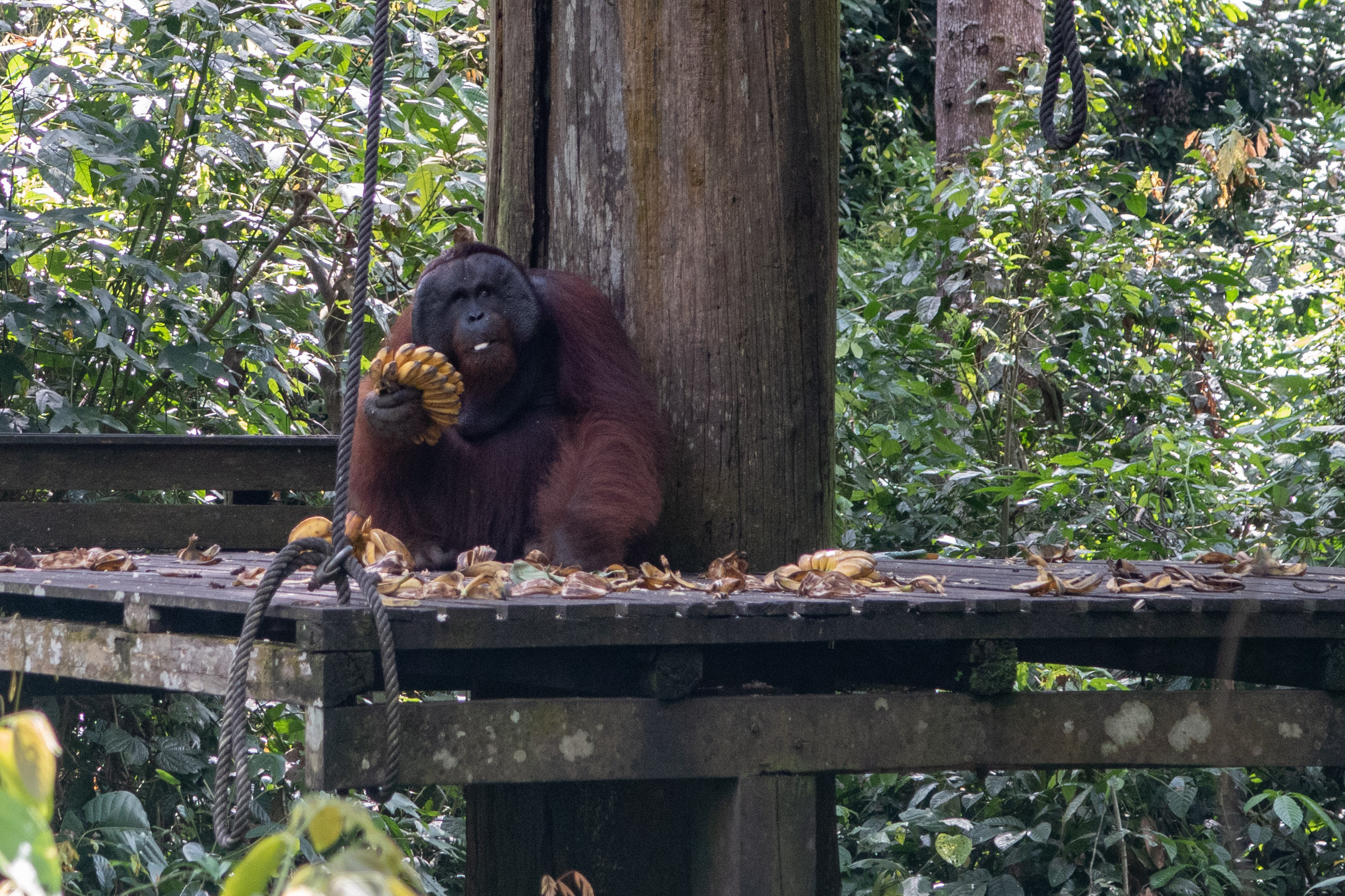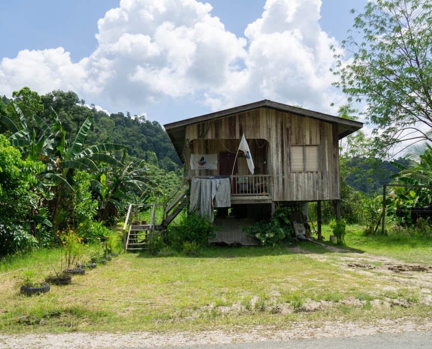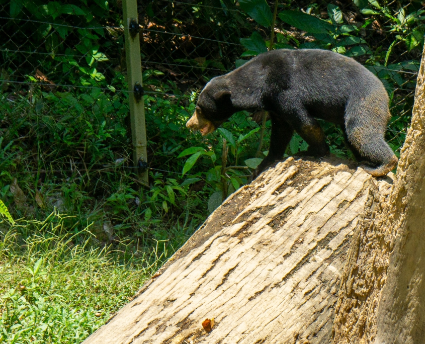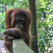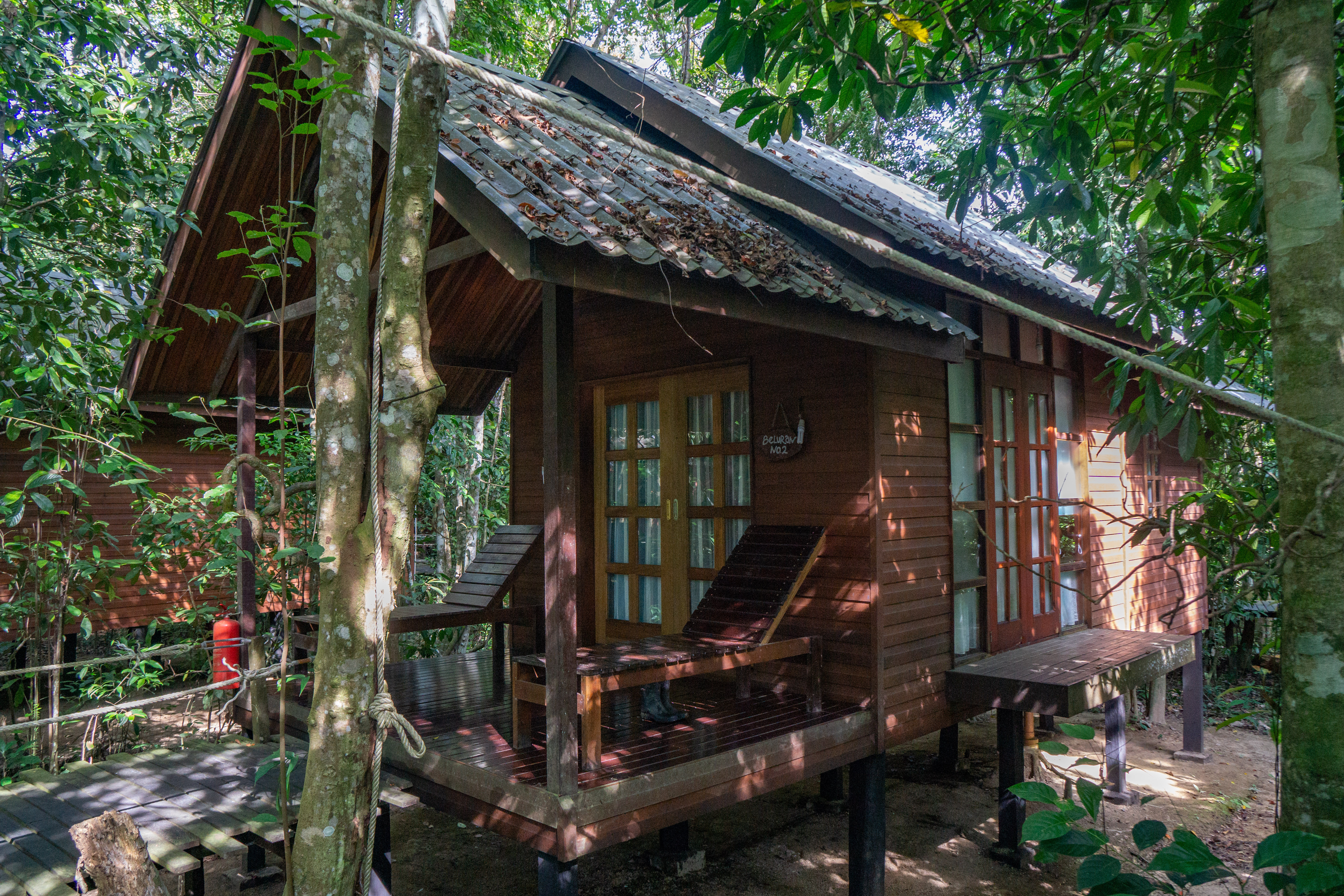 Ich hab mich schwer getan eine Lodge zu finden und mich dann kurzerhand für diejenige entschieden die im Forest Edge Ressort in Sepilok ausgeschrieben war, weil mir die Anzahl der Bootsfahrten und Wanderungen zugesagt hat. Das sollte sich als Glücksgriff erweisen. Zwar waren die Häuschen sehr, sehr dunkel (fast schwarzes Holz und Lampen mit ca. 10 Watt Leistung) aber die Dusche war genial (heiss, viel Wasser und super Brause) . Gerade nachdem man für über eine Stunde mit dem Boot durch den Regen geprescht ist.