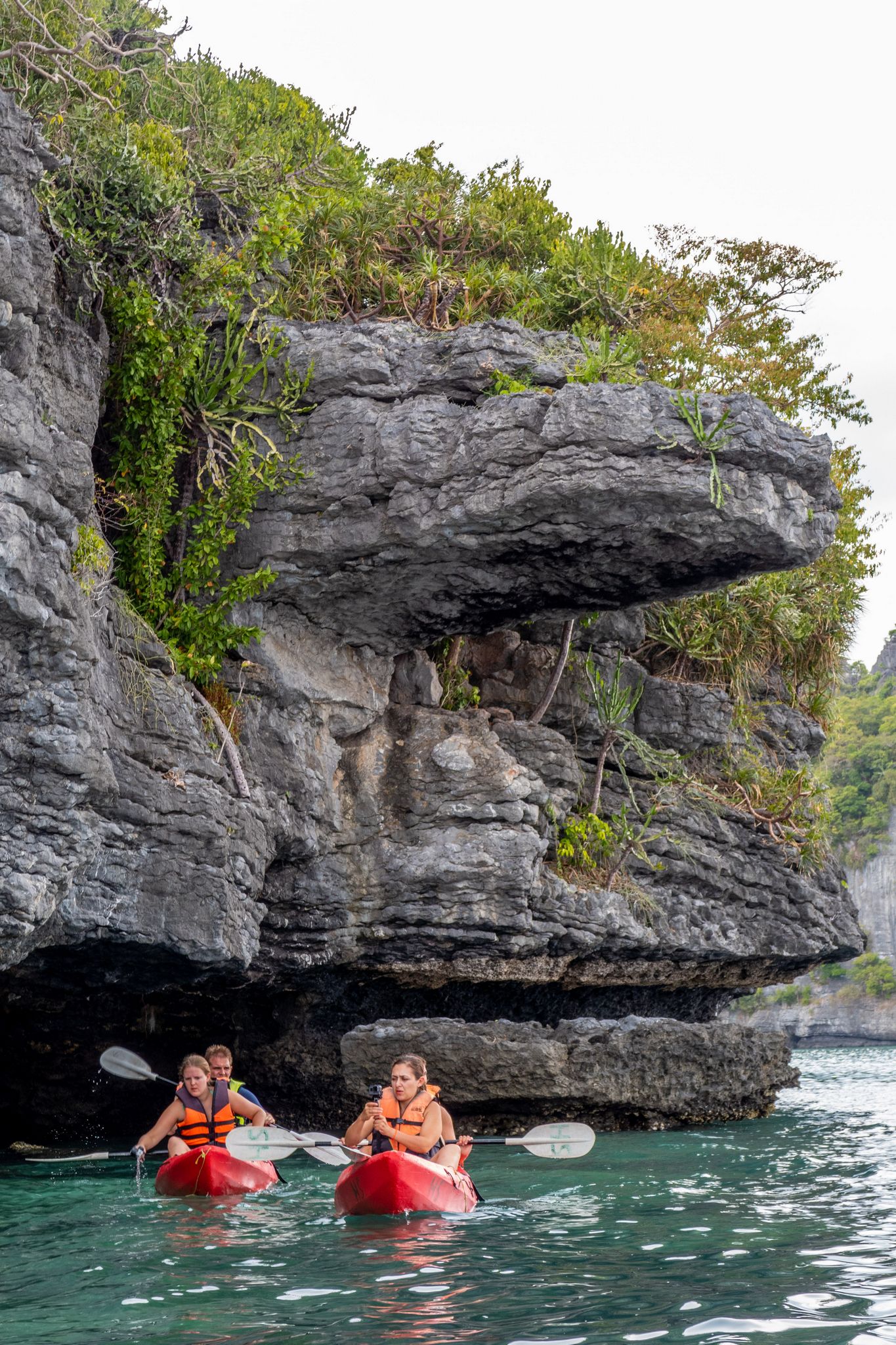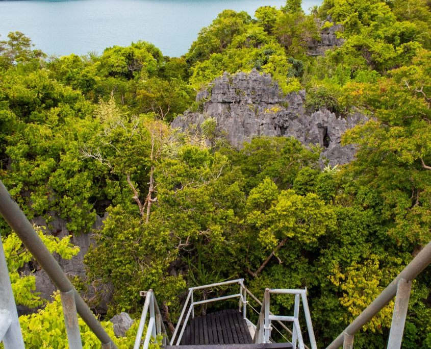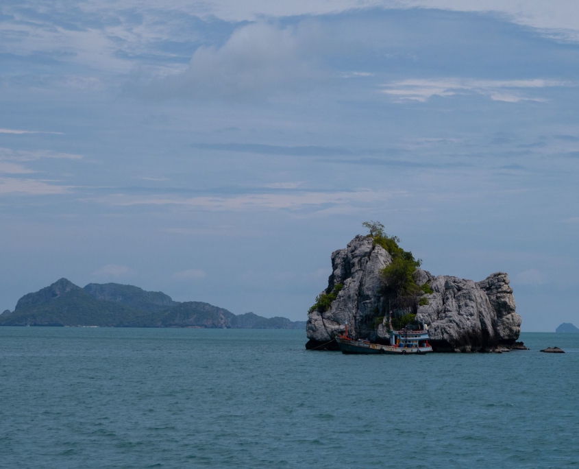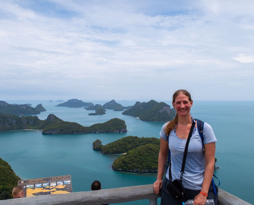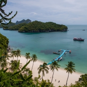 Kurzentschlossen habe ich von Borneo aus Flüge nach Thailand, genauer Koh Samui, gebucht. Malaysia war nicht wirklich mein Reiseland. Ich hab zwar viel gesehen und erlebt, aber irgendwie war mir nie recht wohl in dem Land. Wie sehr mich Malaysia gestresst hat habe ich zum einen im Flieger nach Bangkok gemerkt. Schon beim Anflug auf Bangkok war mir das Land von oben viel sympathischer als es Malaysia mit seinen fast flächendeckenden Palmölplantagen war. Zum anderen war nach ein paar Tagen Koh Samui klar, dass ich meinen Aufenthalt verlängern würde und ich habe zwei Wochen fast ausschliesslich an Pool und Strand verbracht. OK, für einen Ausflug in den Mu Ko Ang Thong Nationalpark habe ich mich aufgerafft und auch die Restaurants in der Gegend hab ich erkundet und ein paar Geocaches gefunden, aber eigentlich habe ich in den zwei Wochen nur sehr hart an meiner perfekten Bräune gearbeitet.
